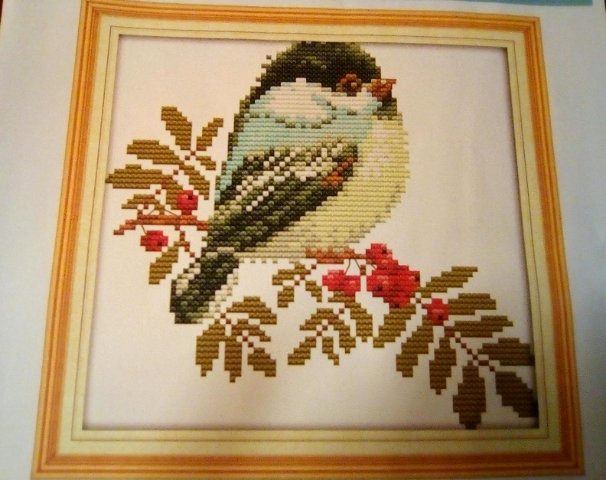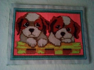 Trabajo de Bordado hecho a mano en Punto de Cruz sobre tela impresa