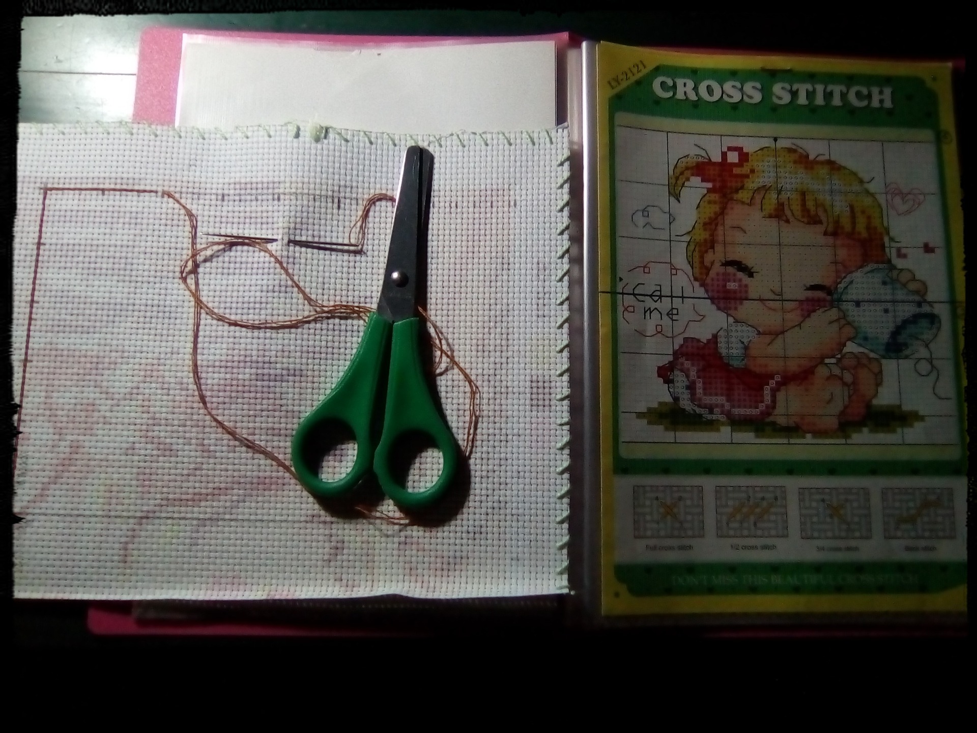 Inicio del Bordado NIÑA JUGANDO CON TELÉFONO